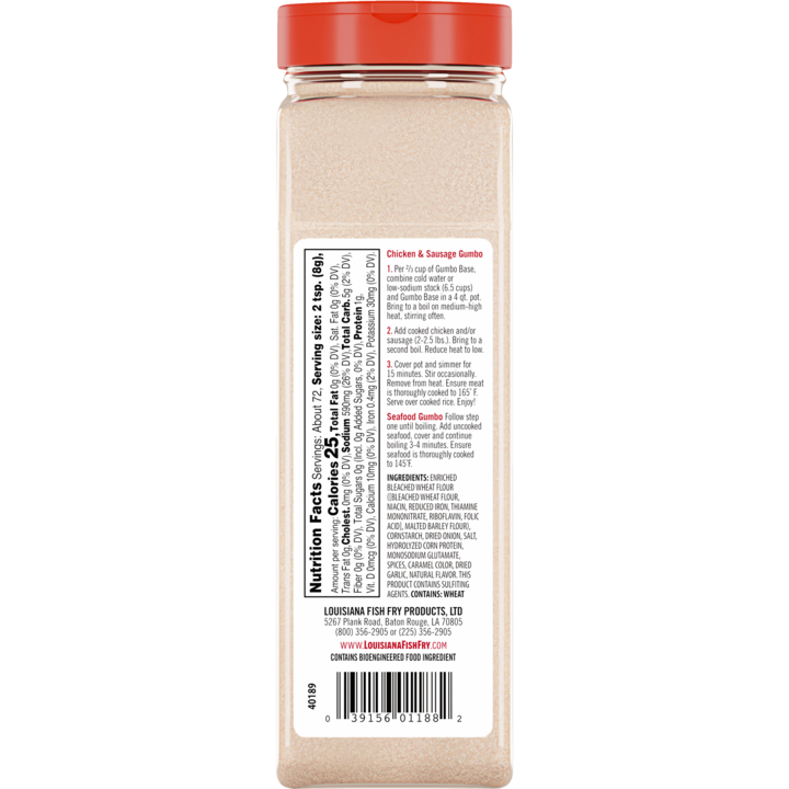 You don’t have to be Cajun to make great gumbo! Louisiana Fish Fry Gumbo Base brings the authentic, bold flavors of Louisiana’s signature dish right to your kitchen. Gumbo, a classic Louisiana dish, is a rich, hearty stew made with a flavorful roux-based broth, protein (like shrimp, chicken, sausage, or a combination), and vegetables, all simmered together to create a satisfying, deeply seasoned meal. Our gumbo base combines the perfect blend of seasonings, spices, and aromatics to give you a robust, savory gumbo without the time or complexity of making a roux from scratch. Just add your favorite ingredients, simmer, and serve over rice for a comforting, flavorful meal the whole family will love.